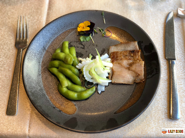 El menú comienza con un surtido de aperitivos que consta de tres ingredientes: